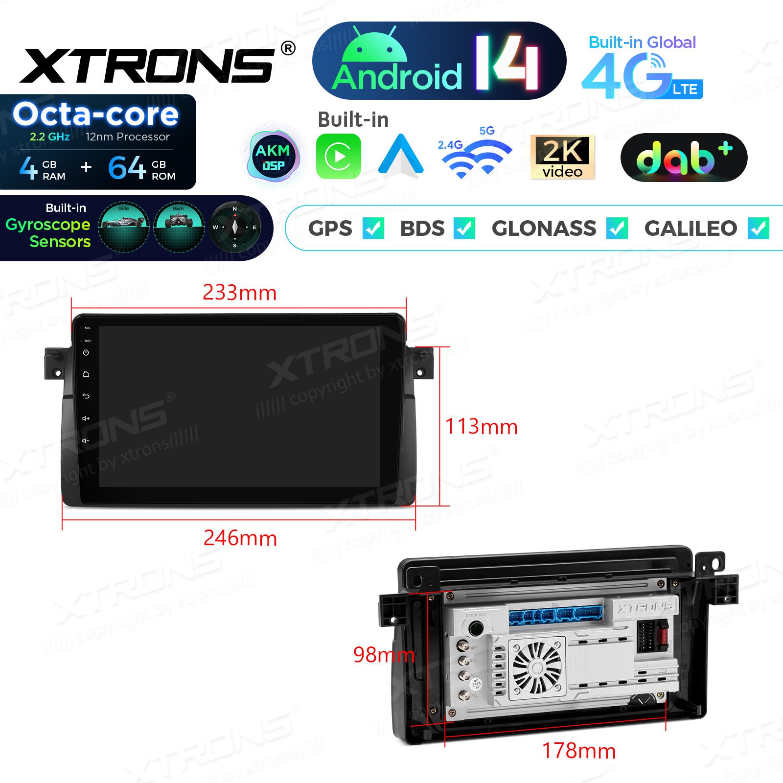 9 inch 4+64GB Android 14 Car Stereo Multimedia Player Built-in DAB+ AKM DSP Global 4G IPS Gyroscope Sensors for BMW/Rover/MG