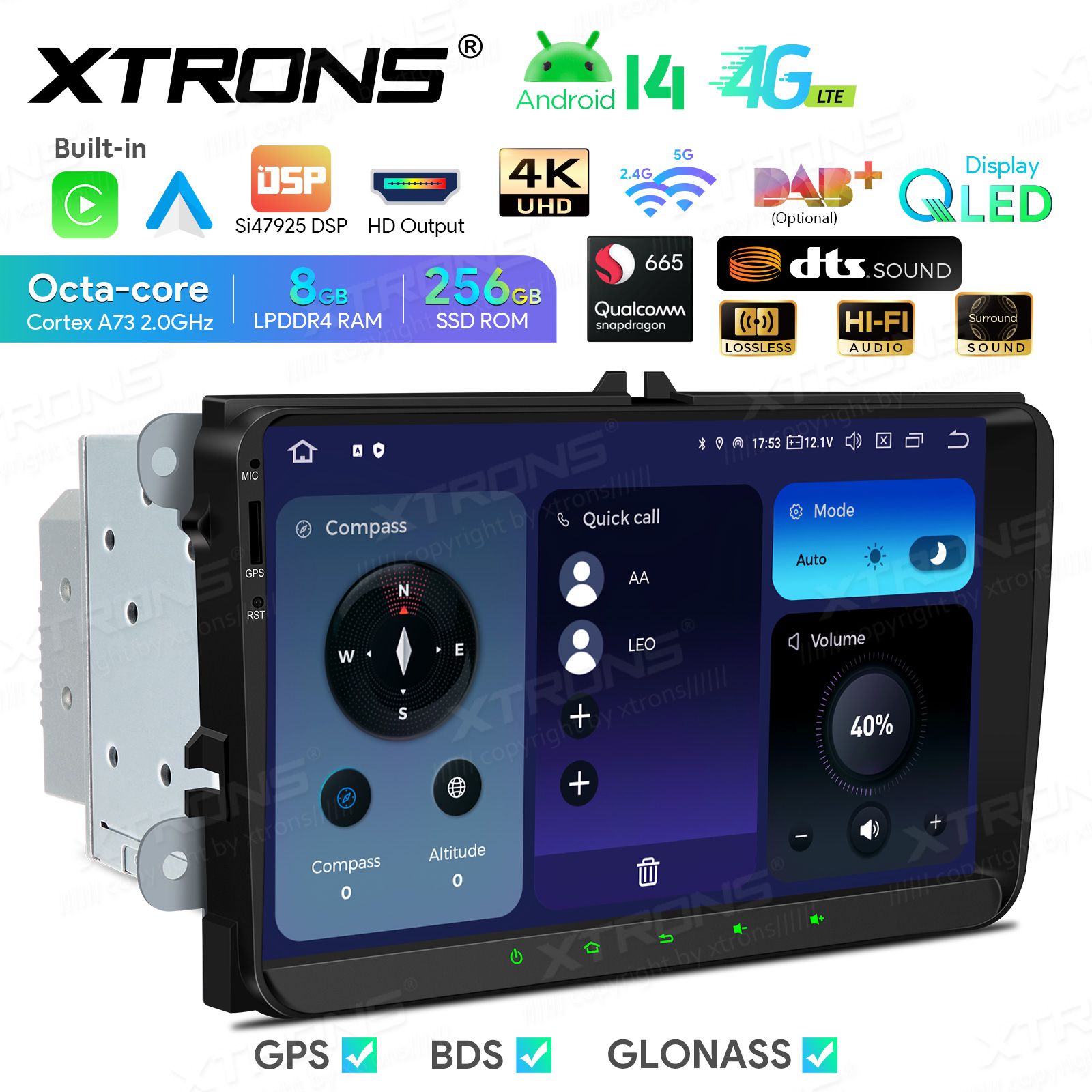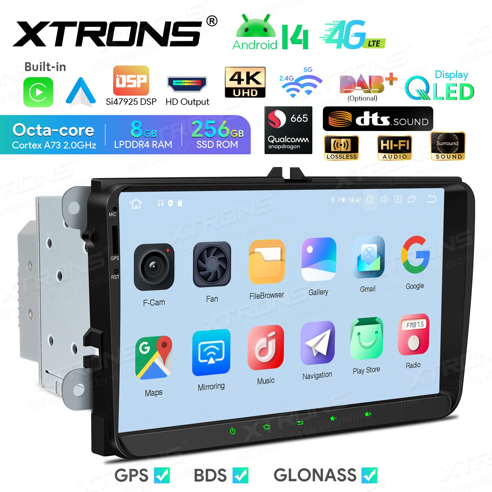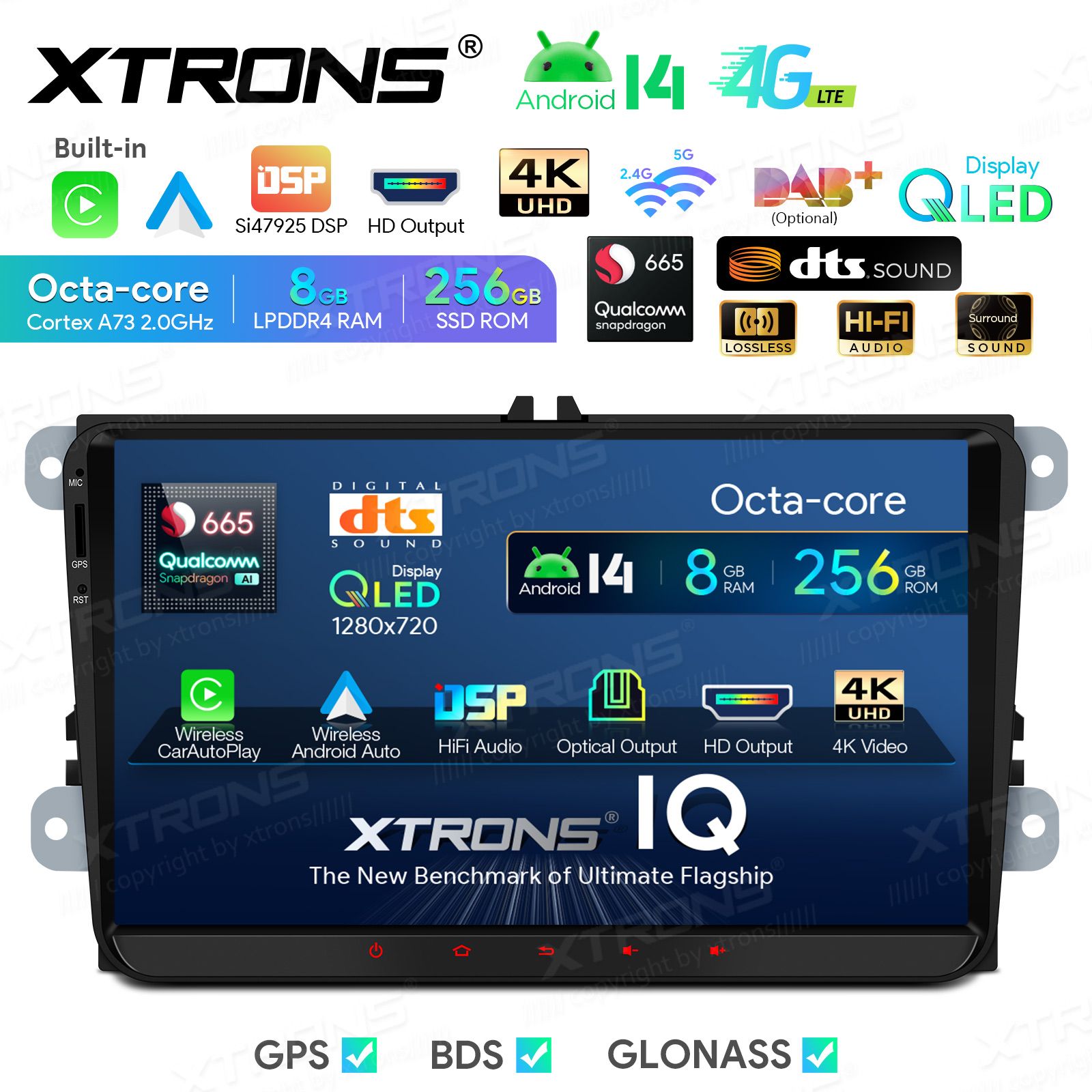 9 Zoll Octa Core Auto Android Navigationssystem 8+256GB QLED IPS Display eingebaut DTS Digital Sound DSP Chipsatz Fit für VW/Skoda/Seat