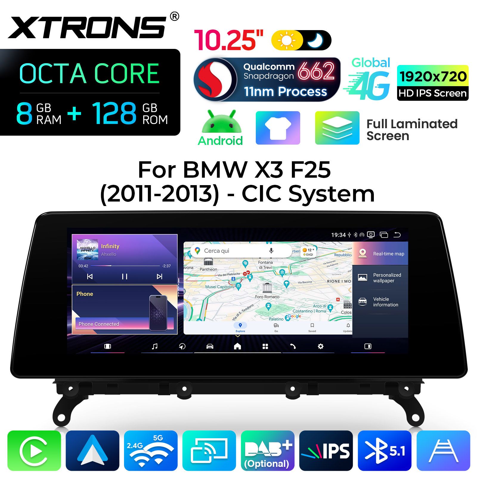 10.25 inch 8+128GB Android Car Stereo Qualcomm Snapdragon 662 Fully Laminated Screen Global 4G for BMW X3 F25 With CIC System