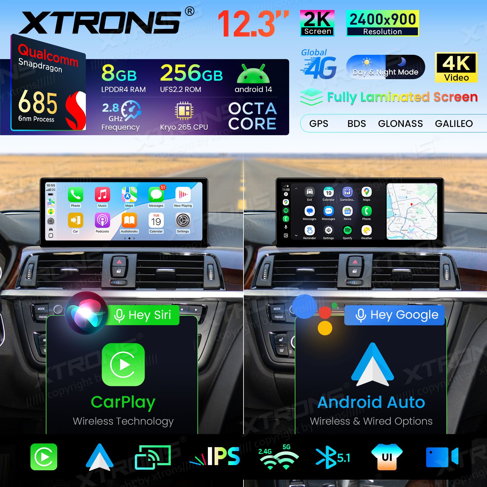 12.3" 2K Bildschirm Qualcomm Snapdragon 685 8+256GB Android Auto Bildschirm Infotainment System Upgrade für BMW 3/4 Serie/M3/M4 LHD NBT System