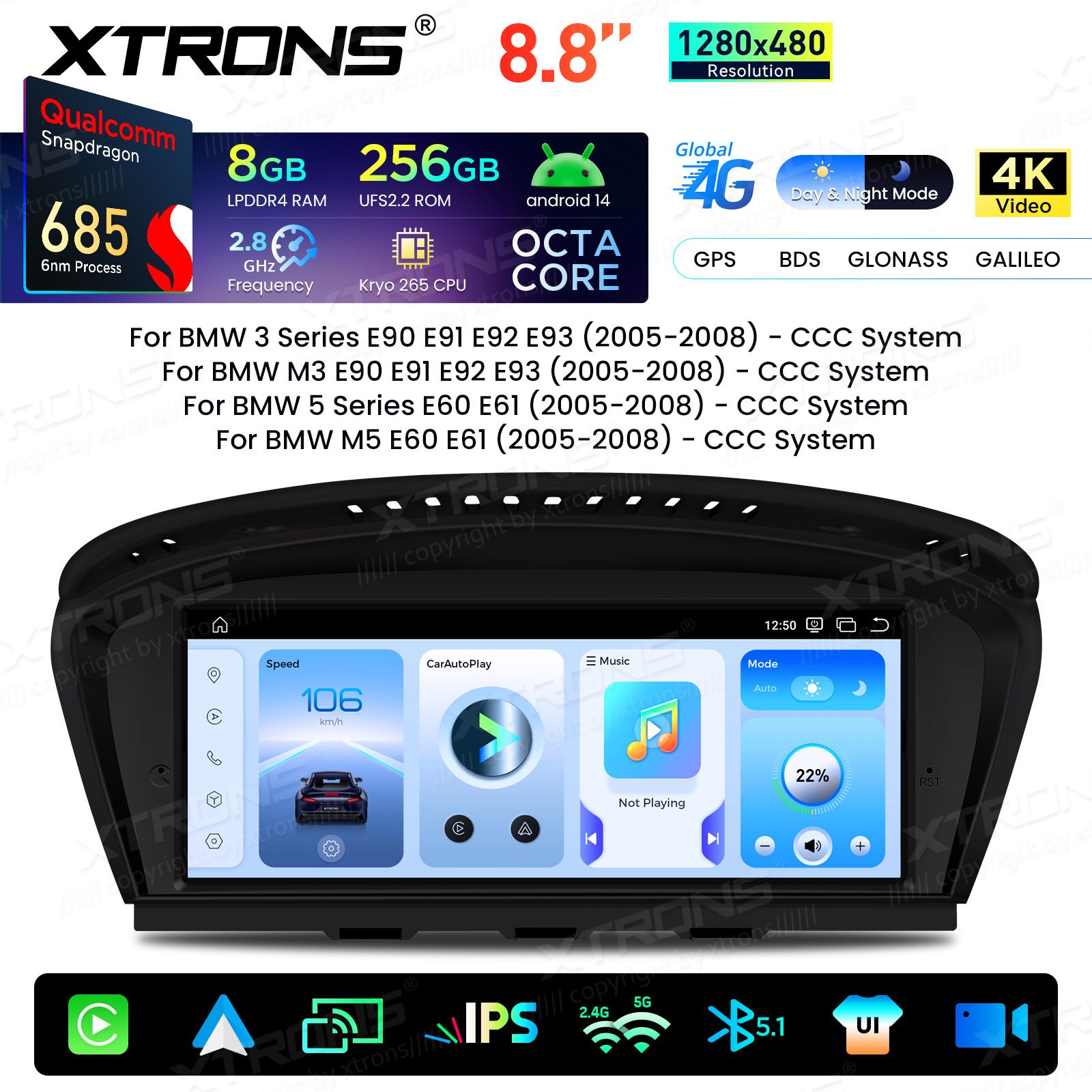 8.8 Zoll Qualcomm Snapdragon 685 8+256GB IPS Bildschirm Android Auto Bildschirm Infotainment System Upgrade für BMW 3/5 Serie/M3/M5 mit CCC System