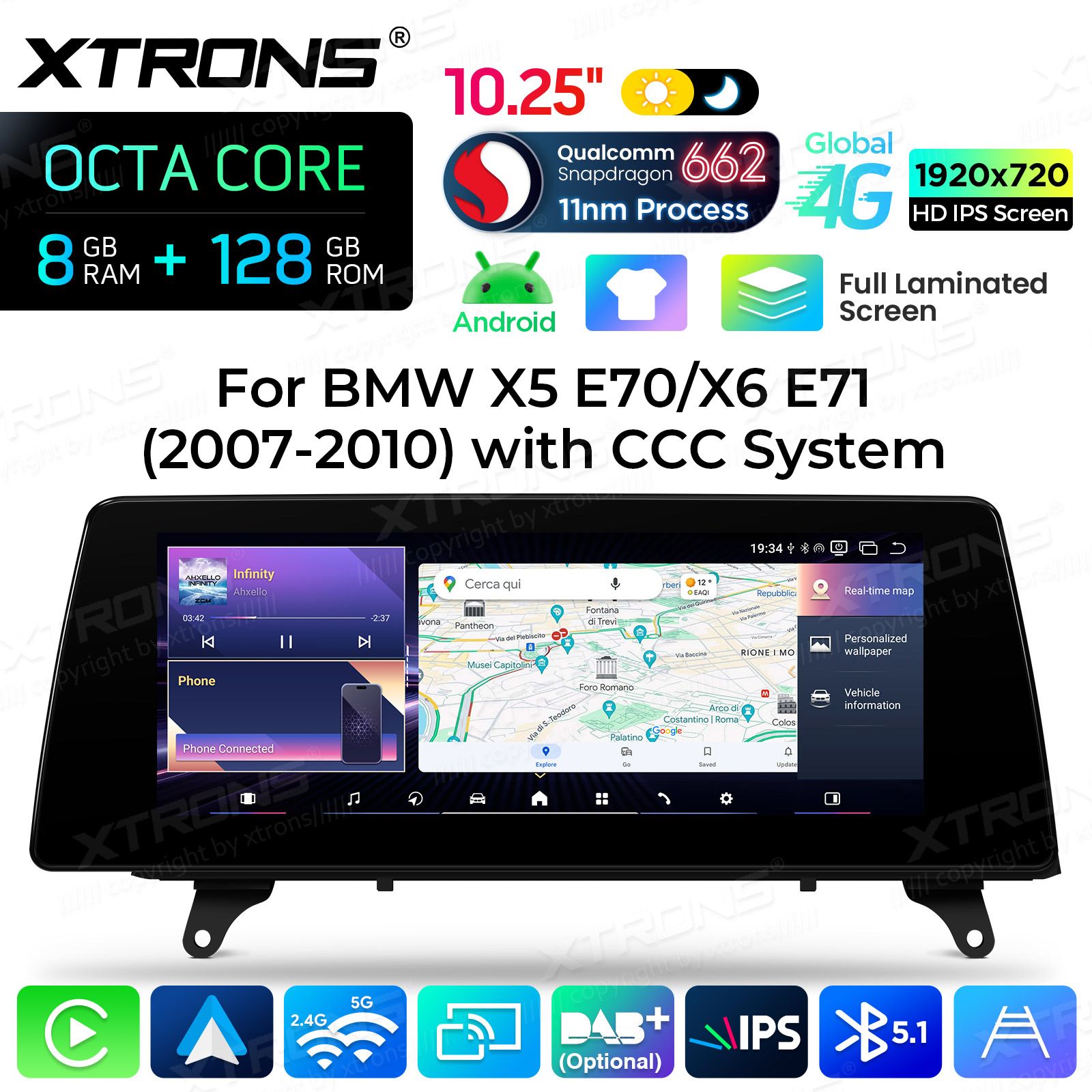 10.25 Zoll 8+128GB Android Car Stereo Qualcomm Snapdragon 662 Volllaminierter Bildschirm Global 4G für BMW X5 E70/X6 E71 LHD mit CCC System