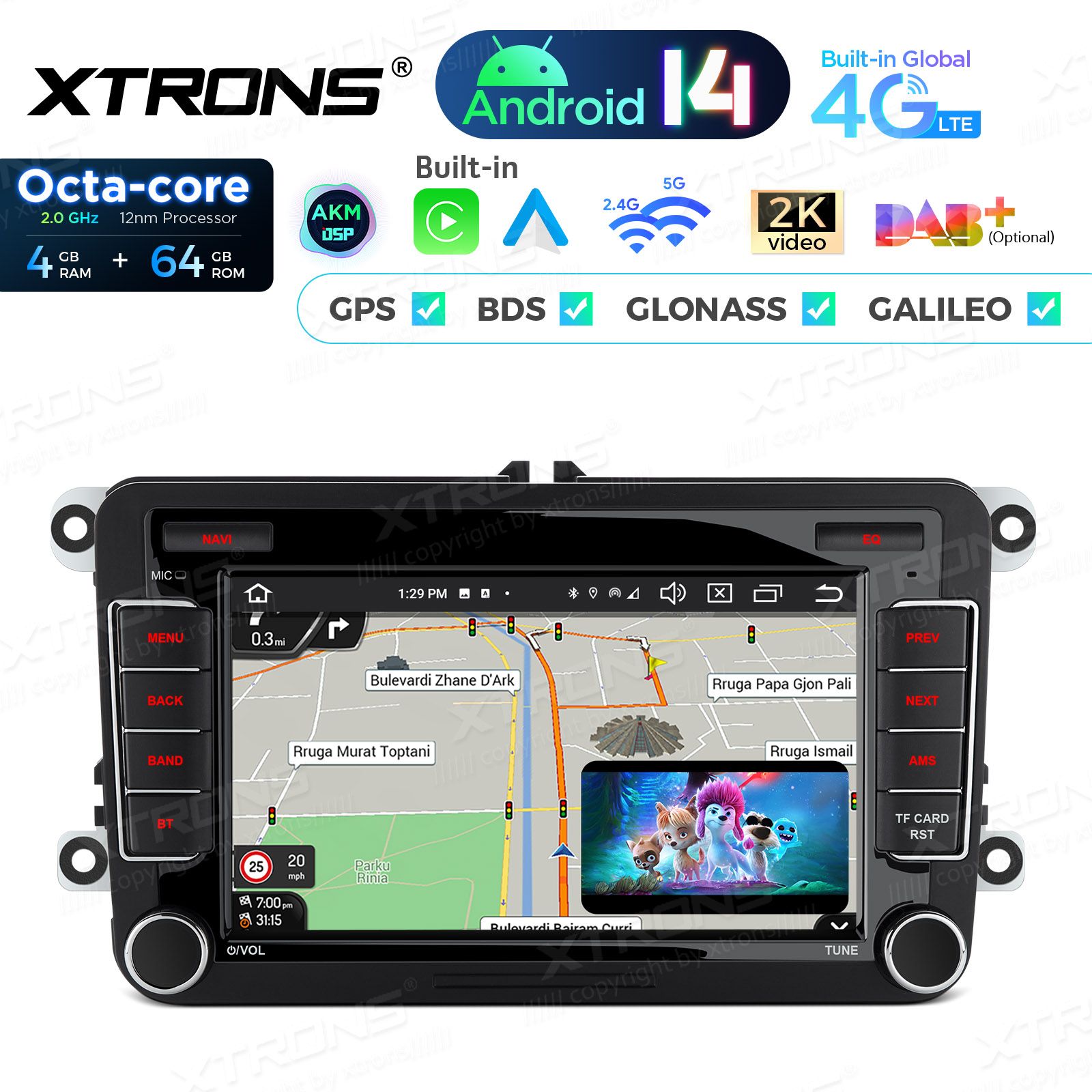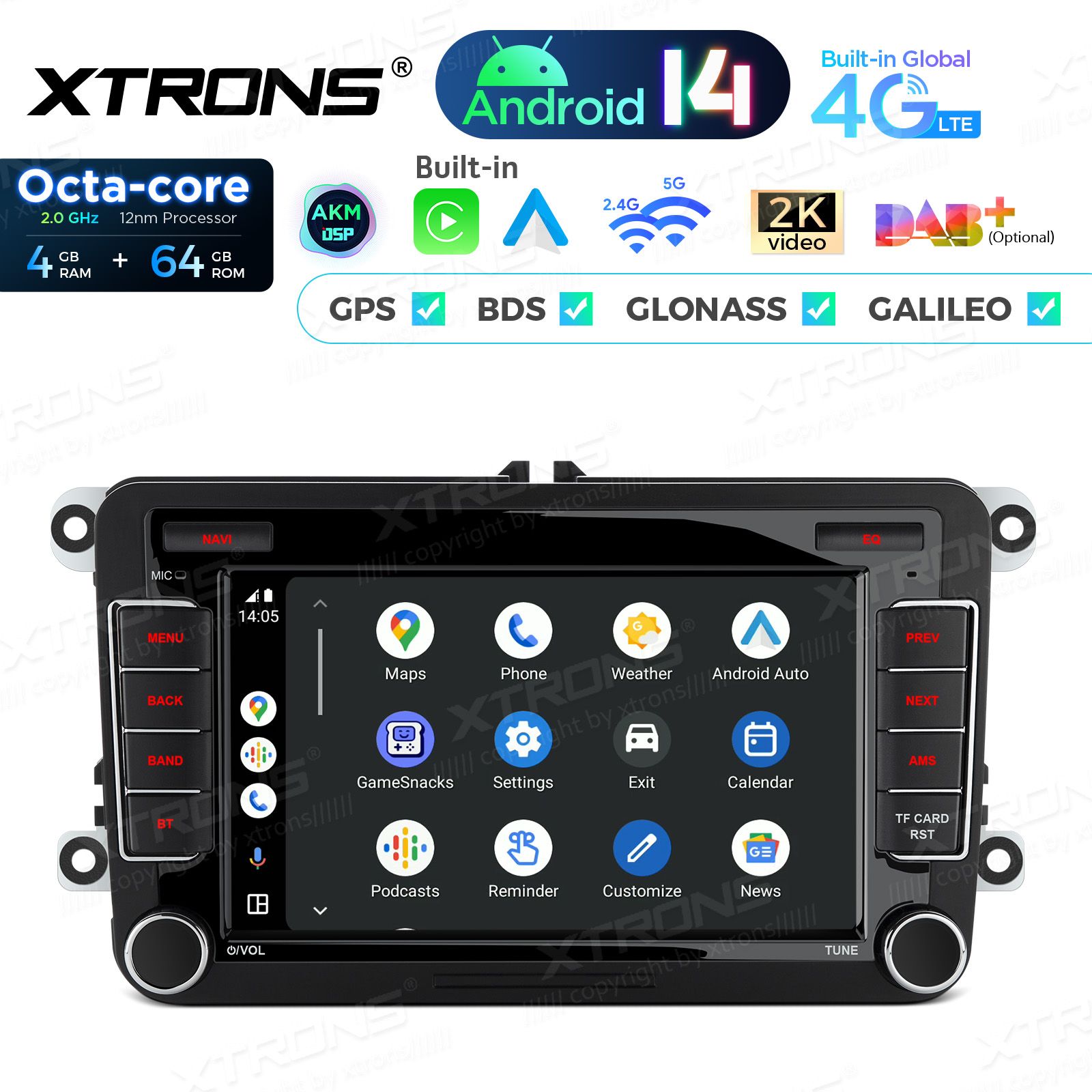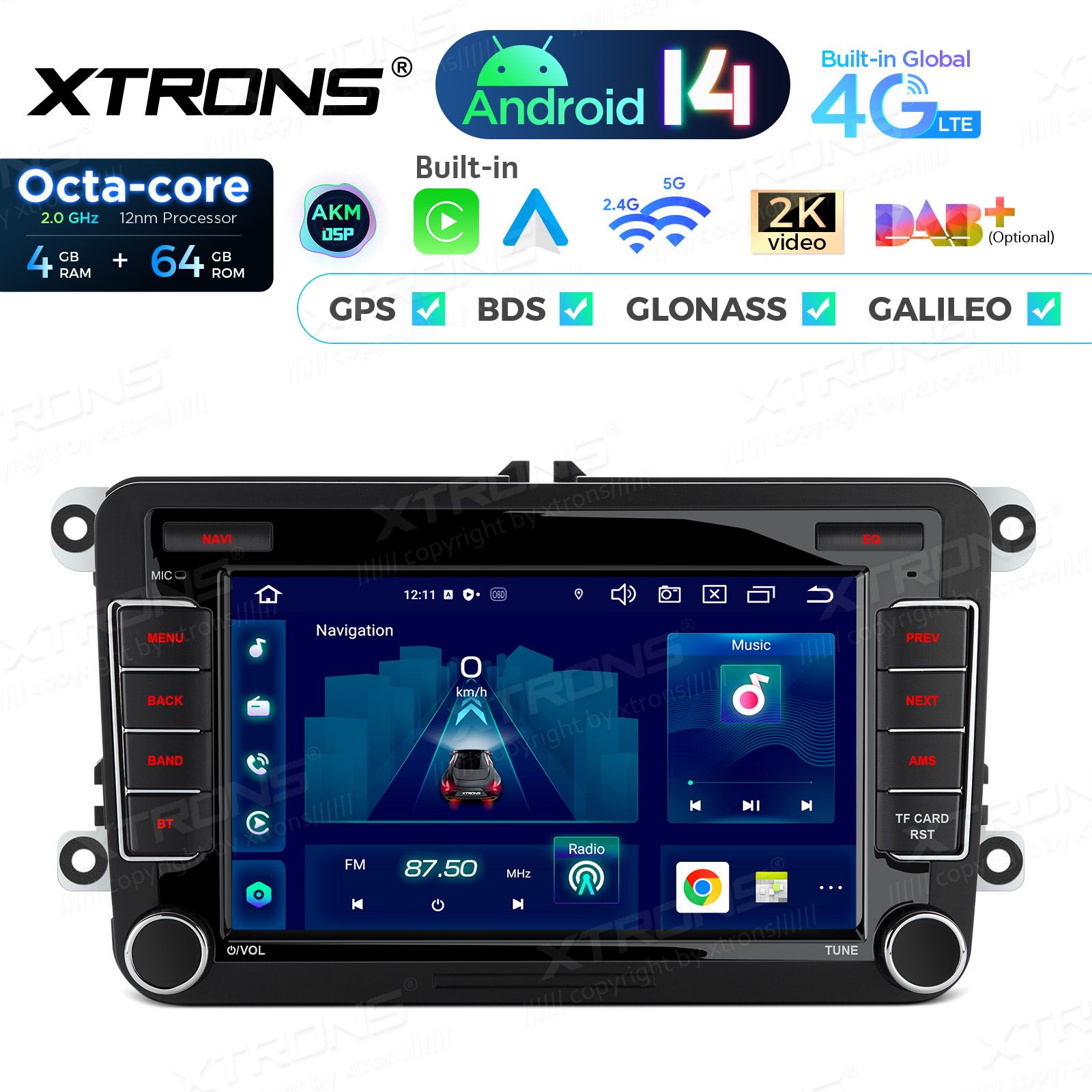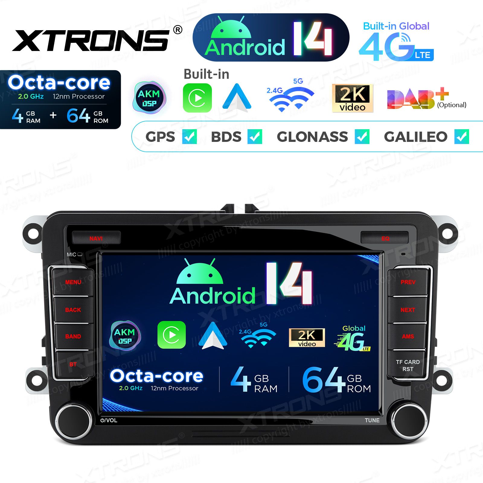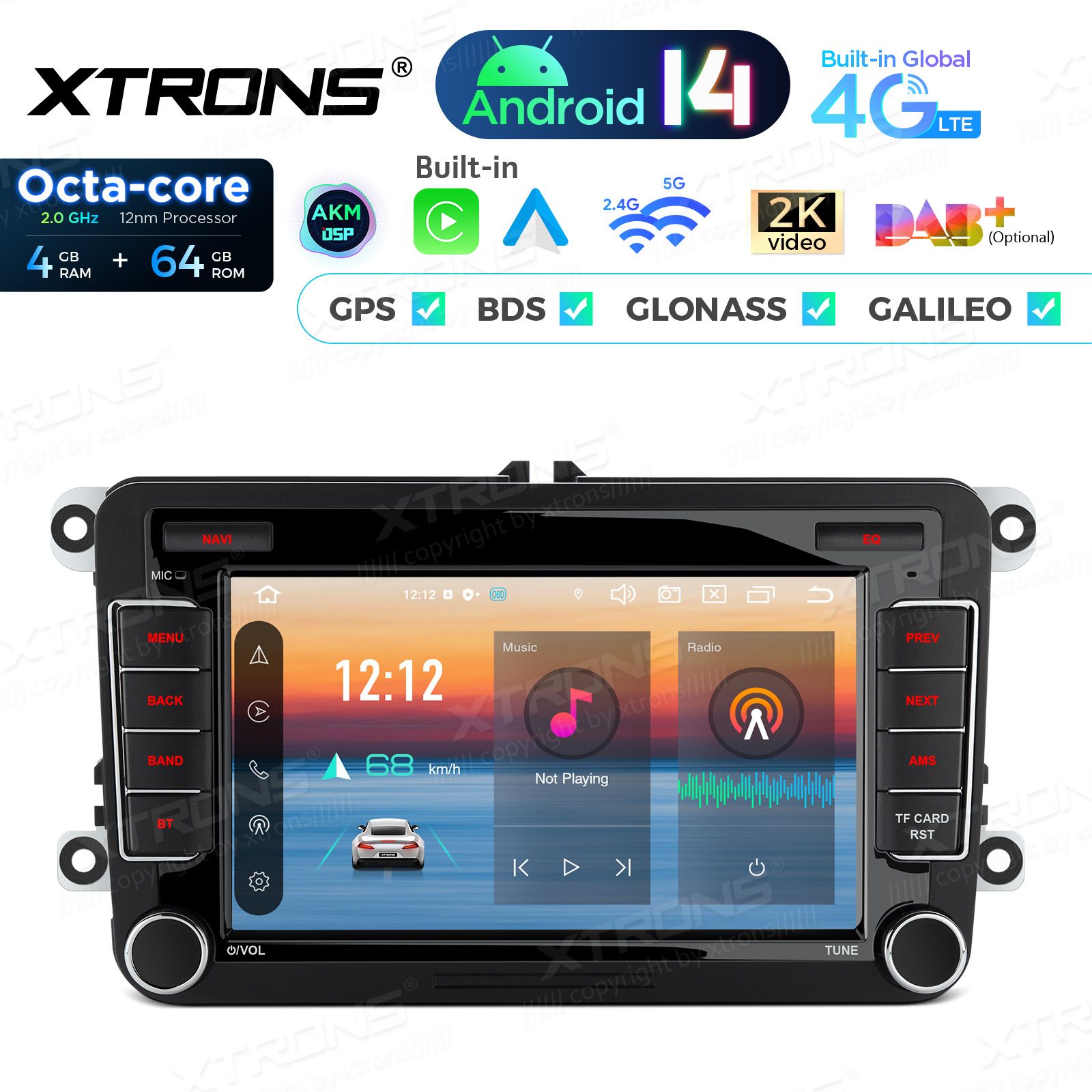 7 inch Octa Core 4+64GB Android 14 Car Stereo Multimedia Player Custom Fit for Volkswagen / SEAT / SKODA Global 4G LTE