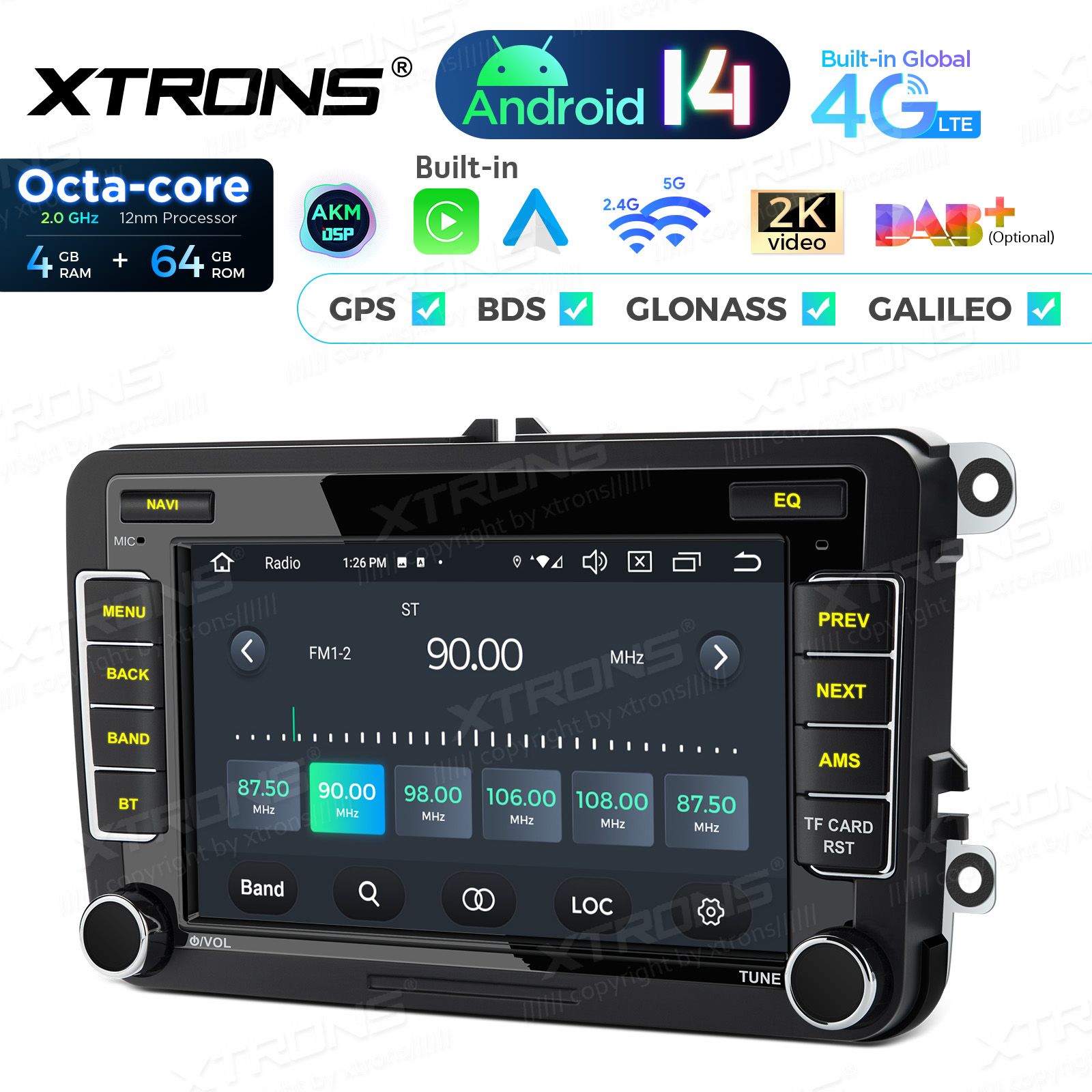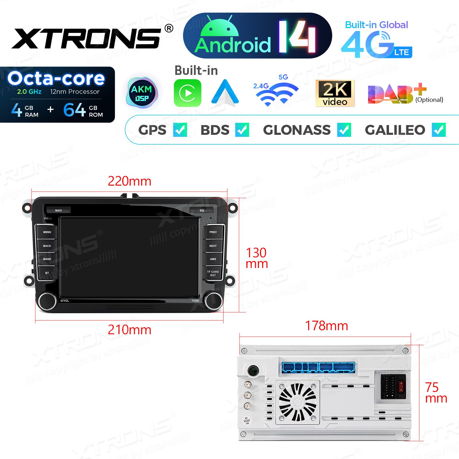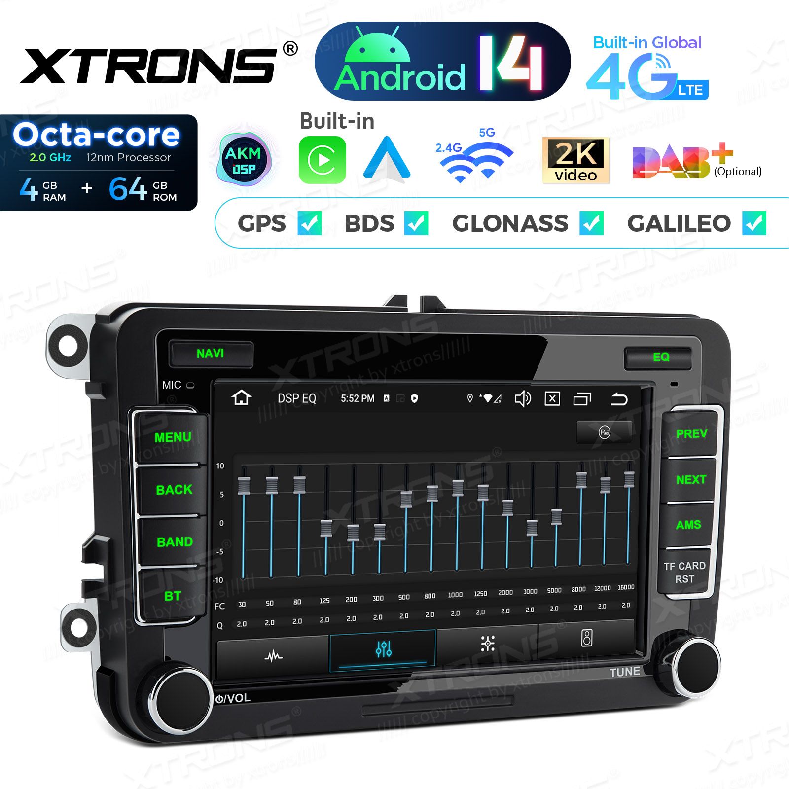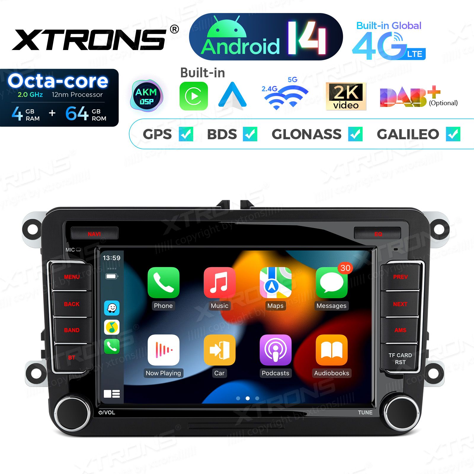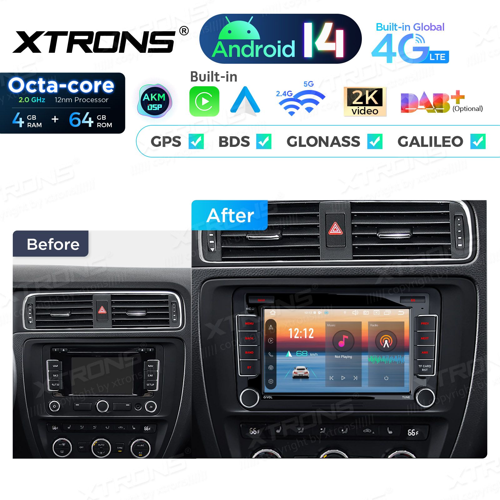 7 inch Octa Core 4+64GB Android 14 Car Stereo Multimedia Player Custom Fit for Volkswagen / SEAT / SKODA Global 4G LTE